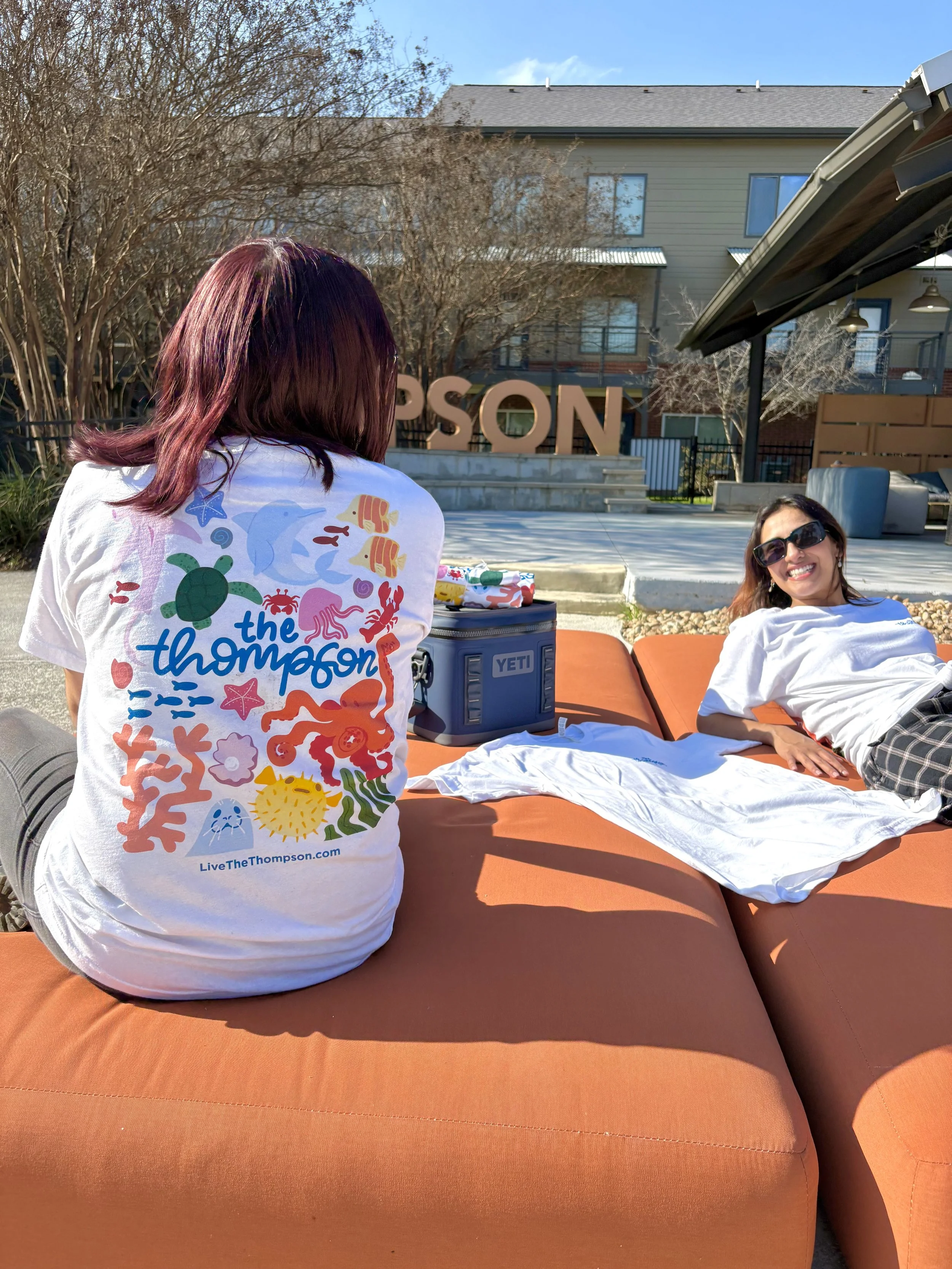 The Thompson is a student housing complex in San Marcos, Texas, right off the Texas State main campus. I created merchandise for them from 2022 to today. The following designs you will see were featured for their tables at Housing Fair on campus, and for their Move In Days of over 500 residents.